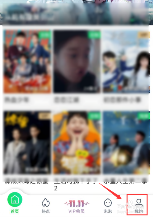2、进入爱奇艺首页,点击右下角我的;