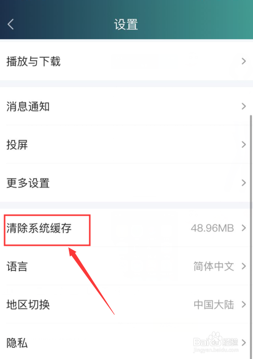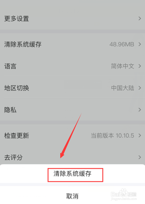 4、进入设置界面,点击清除系统缓存;