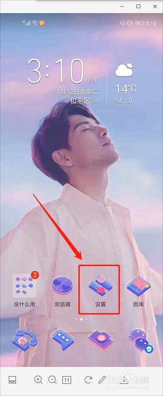 1、首先我们在桌面上找到手机设置,点击进入;