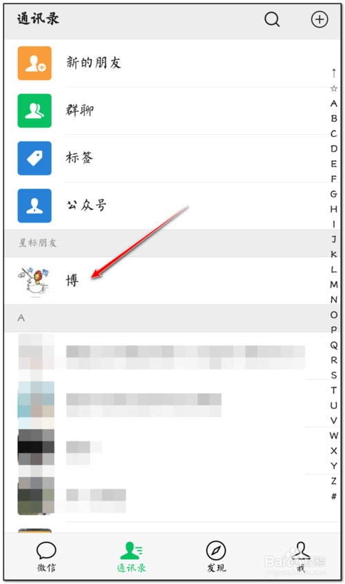 3、点击星标朋友栏位好友