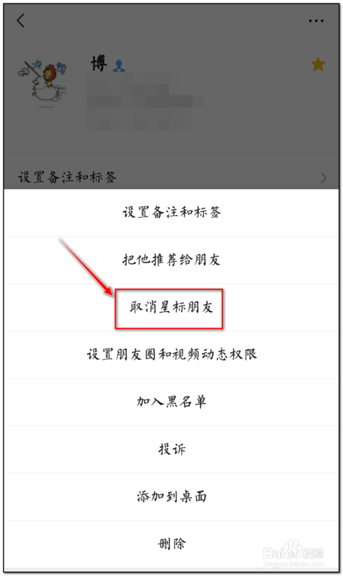 5、点击“取消星标朋友”