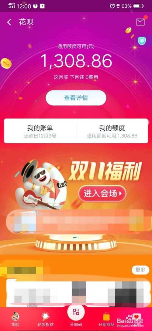 4、进入花呗页面后,点击中间的“双11福利进入会场”。