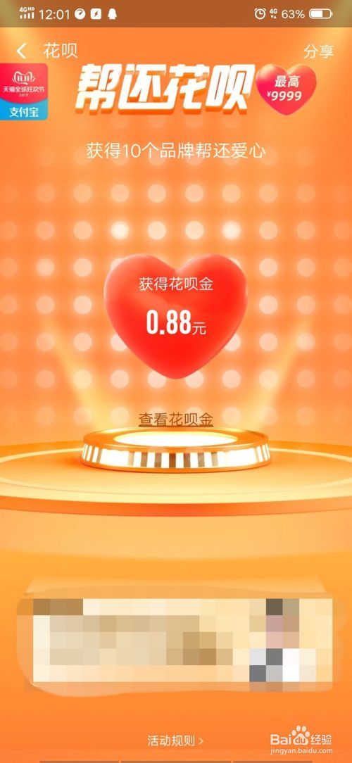 7、这样之后,花呗金便收获成功了,在你还花呗的时候就会自动进行抵扣了。时间有限,快快开奖吧,希望大家都可以开一个大大的奖励哟!