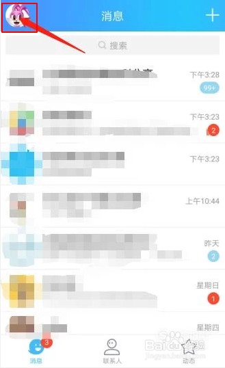 1、首先打开手机登录QQ,在QQ页面上点击左上角的QQ头像。