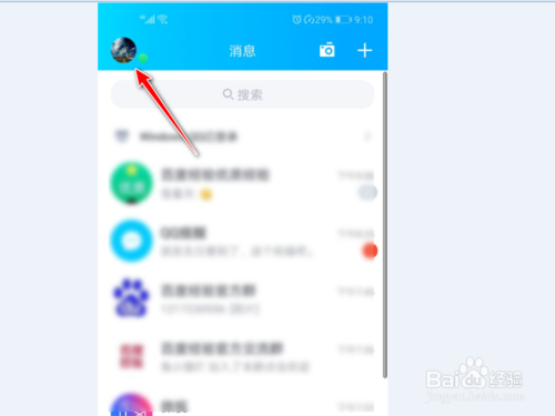 1、在手机上打开手机QQ,然后点击最左上角的图标,