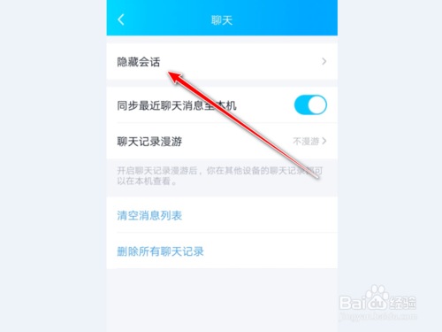 5、在聊天界面里面,我们看到最上面有一个【隐藏对话】选项,选择它,