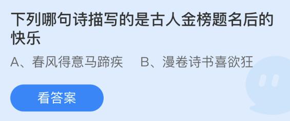 问题:下列那句诗描写的是古人金榜题名后的快乐