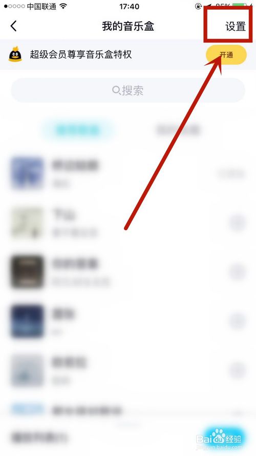 4、在我的音乐盒页面,点击并进入右上角的设置选项。