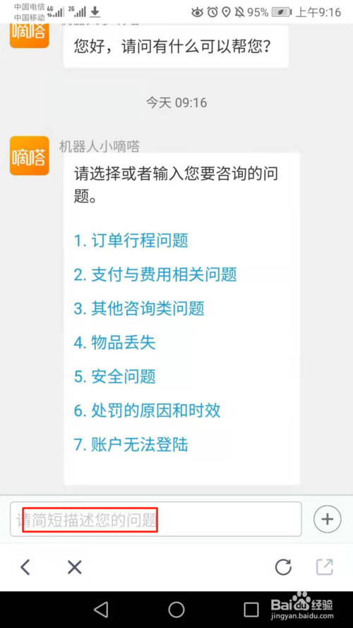 7、最后,进入客服界面,在编辑框中,输入【转人工】,再点【发送】即可,如下图所示
