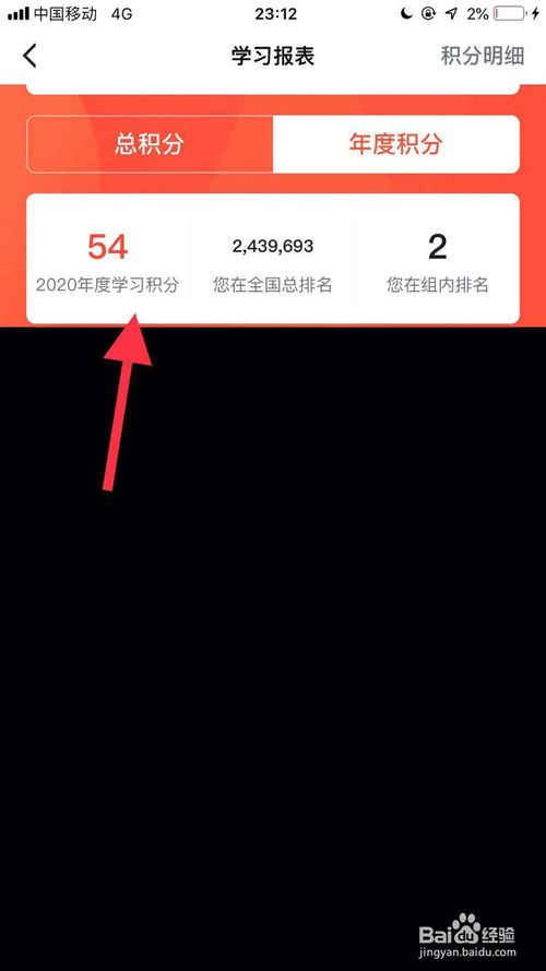 5、在这个界面我们就可以查看到自己学习强国账号的年度学习积分了。