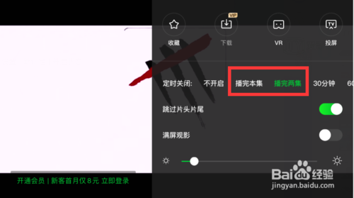 5、可以选择“播完本集”或“播完两集”,设置播放完本集或播放完两集后自动关闭