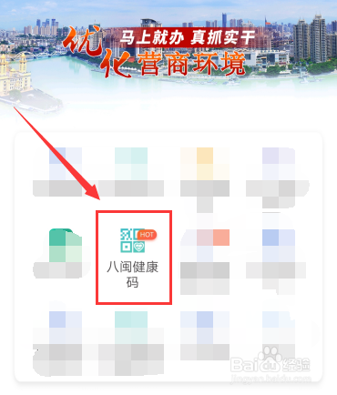 3、进入闽政通首页,点击“八敏健康码”。