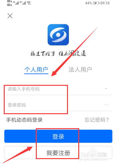 4、跳转登录界面,输入手机号和密码登陆,无账号点击“我要注册”。