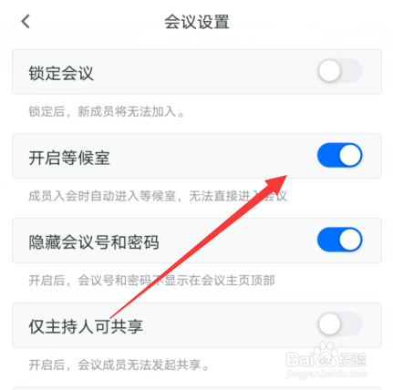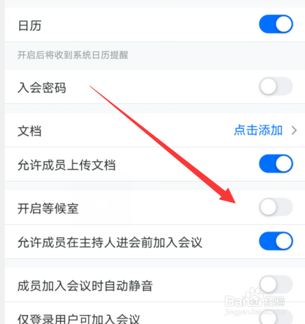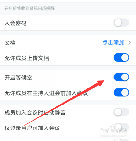 2、创建会议的时候可以设置开启等候室。