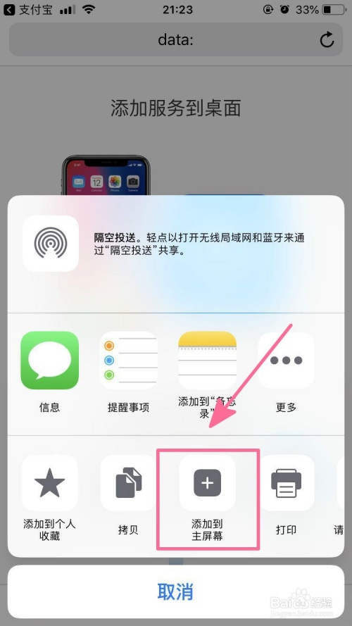 8、然后找到“添加到主屏幕”,然后点击按按钮: