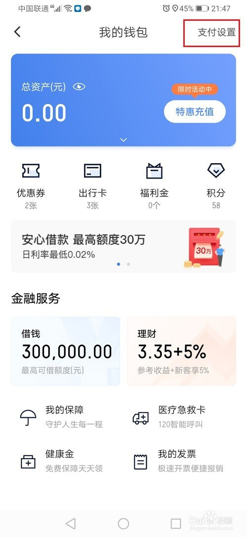 3、第三步在我的钱包中,点击支付设置,如下图所示: