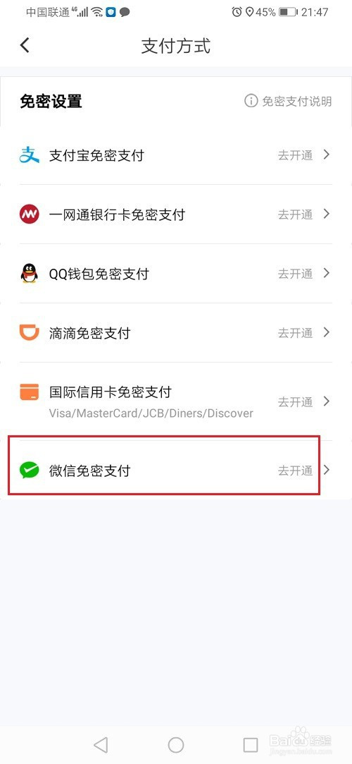 4、第四步进去支付设置之后,点击开通微信免密支付,如下图所示: