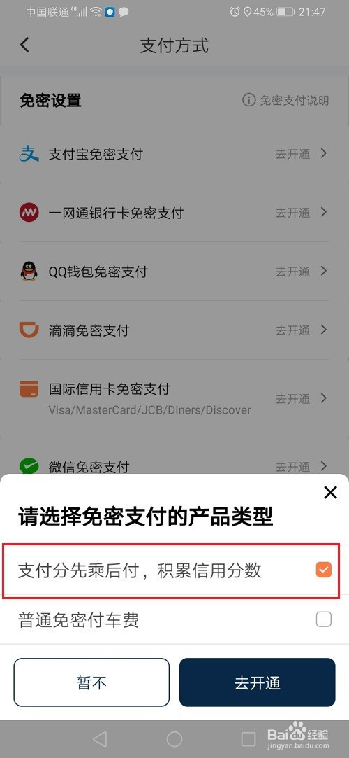 5、第五步选择支付分先乘后付,进行开通微信免密支付,如下图所示: